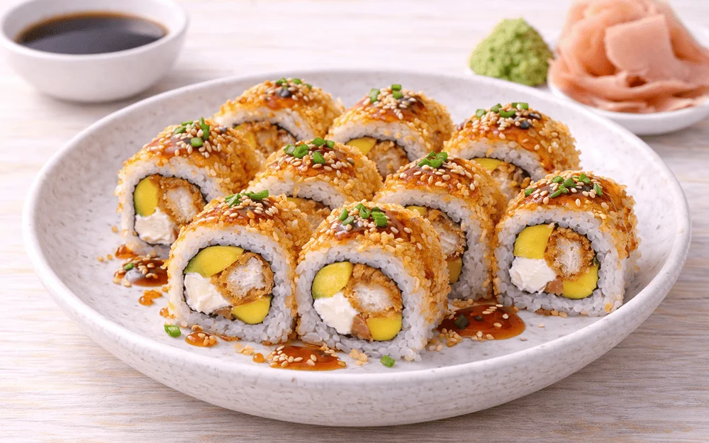 Tempura-Garnelen, Gurke, Mango, Frischkäse